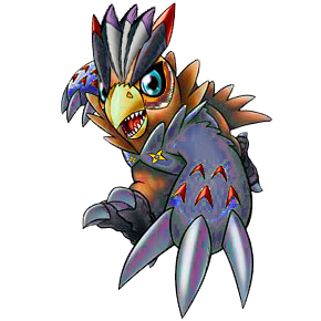 被柔軟羽毛覆蓋的雛鳥型數碼獸。視力非常高,可縱覽大範圍並對周圍活動的東西瞬間作出反應。好奇心強烈的個性,不認生容易靠近是這個數碼獸的人氣所在。但是它極端討厭尾巴被觸摸,粗心碰了尾巴的話,會散步羽毛掩人耳目『散羽(FWA Feather)』所以需要注意下。