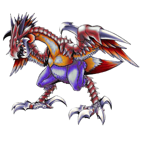 擁有強勁的腳力,被稱呼為活化石的古代鳥數碼獸。比起原種來,亞種的身體顯現炙熱的赤紅色,令敵人遠遠望去不寒而慄。而它的性格也如其毛色一樣暴躁且善妒,因為其翅膀的面積不足持續飛行,所以一旦有鳥型的數碼獸飛過它身邊時,它總會主動發動攻擊想要奪取對方的翅膀;取而代之的是備有強韌筋力的腿,能以超過時速200km/h的速度進行疾走。另外,它覆蓋全身的羽毛含有名為Flare Coherer【瞎扯淡的】的金屬,使得觸碰到它的敵人會被灼傷。