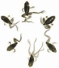 在美國,靠近湖泊和河流的濕地中出現了一些嚴重畸形的青蛙,有的只有3條腿,有的前兩條腿缺失,有的後腿長了3條或4條。這一訊息引起了世界各地的環保專家和人士的震驚和密切關注。對此,有人認為是寄生蟲搗的鬼,有的認為罪魁禍首是殺蟲劑,還有的則認為是臭氧層破壞造成紫外線過多污染環境而致動物畸形。其中最大的可能是水源污染所致。可以確認的是水源受到多種物質的污染,包括特殊的殺蟲劑、重金屬、氯化物,當然也不排除其他化學物質的污染。