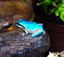 日本山梨縣北杜市展出淺藍色青蛙2014年8月,日本山梨縣北杜市展出淺藍色青蛙。青蛙通常是綠色,10萬隻青蛙中有可能僅1隻是藍色,非常少見。這隻青蛙是山梨縣一名4歲孩童水谷葉雨,在田間幫忙收割稻穀時發現的。青蛙體長約2厘米,背部泛著淺藍色,