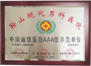 中國誠信醫院AAA級示範單位由中國名醫協會、中國醫療醫藥管理協會、中國十佳誠信醫院組委會共同主辦,在全國範圍內選擇一批醫療質量好、技術水平高、設施完備、特別在醫療服務、誠信方面優秀的醫院申報“中國誠信醫院AAA級示範單位”活動。