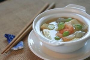 做法:用燒開的開水反覆澆在鴨子上去除血沫,再將雪梨切塊去核,枸杞溫水泡好後備用,將生薑、香蔥、枸杞與之前準備好的食材一起放入燉盅內,加水沒過食材,隔水燉約兩小時。