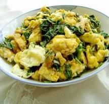 香椿炒雞蛋香椿被稱為“樹上蔬菜”,是香椿樹的嫩芽。每年春季穀雨前後,香椿發的嫩芽可做成各種菜餚。它不僅營養豐富,且具有較高的藥用價值。香椿葉厚芽嫩,綠葉紅邊,猶如瑪瑙、翡翠,香味濃郁,營養之豐富遠高於其它蔬菜,為宴賓之名貴佳肴。