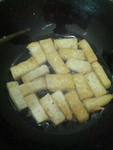3.鍋里到油,煎至兩面都是金黃色,煎的過程記得小火,時不時晃動鍋,免得豆腐粘鍋。。。 | ![]() |