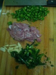 1.準備好材料,切好肉,蒜,小蔥,青椒,切好豆腐,香菇。。。 | ![]() |
