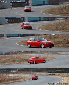 偏於硬朗的懸掛調教讓車身在整個彎道過程中能夠保持良好的車身姿態,在繞樁時我們也可以看到側傾幅度非常小,在樁桶之間穿梭遊刃有餘。而懸掛在提供了良好支撐性的前提下,還能過濾掉一些細小的路面顛簸,提高了駕駛的舒適性。不過讓我有些不太適應的是馬自達3兩廂的方向盤轉動幅度非常大,而且與大多數日本車一樣,轉向助力非常輕,雖然隨著車速的提高可以明顯感覺到隨速轉向系統發揮著作用,但是仍然會帶來一些路感上的缺失,不過對於一些女性用戶來說應該是非常合適的。