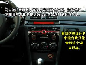 新一代馬自達3在內飾中最吸引人的,莫過於全新的多媒體整合娛樂系統,不但將音響系統、通訊系統、衛星導航等整合,還可與智慧型手機相連以及聲控等科技功能,如此即便在車內仍然可以收發e-mail、刷微博,隨時與朋友保持互動,中控台上獨立的7寸液晶顯示屏搭配中央鞍座鏇鈕的類似寶馬i-drive設計,能帶來更加直觀的操作體驗,還頗有高檔車型的味道。