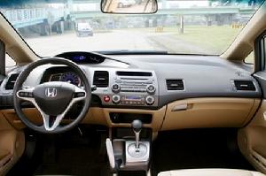 內裝部份Civic延續了外觀的科技風味,雙層設計的儀錶板除了造型之外也是考慮人體工學的創意設計,駕駛座的支撐性與包覆性頗為充足,后座也能讓乘客坐得舒適。這輛車在方向盤後方也裝有換檔撥桿,在將排檔案切入手自一體模式之後,即可透過換檔撥桿進行檔位控制;除了換檔撥桿之外,Civic也是幾輛車中唯一變速箱採用五速設定的車款。
