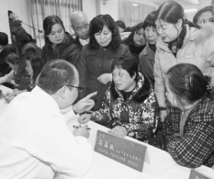 圖為“情暖海島婦兒心”大型義診慰問活動中,台籍醫生高嘉駿博士在熱情接待病患婦女和腦癱病人母親。 盧 雅 攝