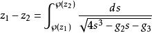 魏爾斯特拉斯橢圓函式右側是複平面上的路徑積分,對不同的路徑,其積分值僅差一個的元素;所以左式應在復環面 中考慮。在此意義下,魏爾斯特拉斯橢圓函式是某類橢圓積分之逆 。