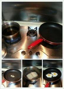 1.準備兩個鍋,一個煮麵條一個煎雞蛋,水開了就可以下麵條。煎雞蛋的鍋下少量的油,把薑絲爆香,然後下雞蛋煎成荷包蛋的樣子。 | ![]() |