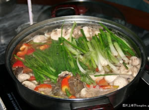 步驟6:大火燒開,都約10分鐘左右,放入些香蔥,調入適量鹽、雞精、即可開吃了。