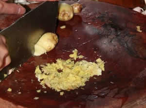 步驟2:姜洗淨切絲;大蒜頭去皮拍成蒜米。