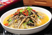 鱔魚做成的菜黃鱔對溫度極為敏感,10度以下,30度以上都會停止吃東西。在存放或運輸過程中,如果密度高,水量少、天氣又熱的話,黃鱔分泌黏液的速度就會加快,釋放熱量並消耗水中的氧氣,使水溫升高,這些粘液要是不 及時排除,黃鱔可就受不了了,不長時間就會出現鰓部發紅、肛門發紅、全身充血的症狀,最後窒息而死。