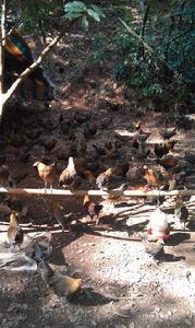 布倫鸚哥鳥雞放養在小丘嶺上,丘嶺上野草種類繁多,還有地膽頭、紫株等珍貴名藥,丘嶺旁邊有一個3畝的魚塘,山雞時常飛過30多米寬的魚塘去覓食。尤其有趣的是為了吃到美味的食物,一些純野生的山雞也混到雞群中覓食,真正實現了自然與人工的和諧。