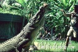 鹽水鱷:不要把澳大利亞鹽水鱷看成是浮在水面上的木頭塊,否則這可是個致命的錯誤!澳大利亞鹽水鱷可以在水中保持靜止不動的狀態,等待過路者自己送上門來。在一眨眼的功夫里,它會突然撲向獵物,然後將其拽到水中淹死後肢解,最後開始享用“美味”。