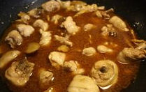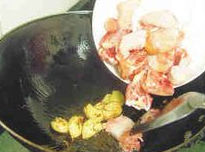 麻油雞1、姜切片;雞洗淨切塊備用。2.、麻油入鍋燒熱,再放入薑片、雞肉拌炒,直至雞肉約有六分熟,再下米酒,最後放進味素、冰糖炒勻即可。