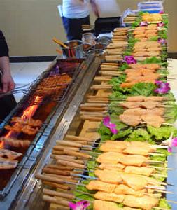 工藝流程:選料→清洗→醃製→穿串→貯存→烤制→調味→成品