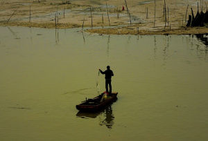黃河捕魚人黃河主要漁獲物種類也有變化,幹流中的魚類,歷史上以鯉魚產量最高,“黃河鯉魚”聞名國內,進入二十一世紀產量已明顯下降。60年代以前中游陝晉河段鯉魚在漁獲產量中占60~70%,居漁獲物組成的首位,據81~82年對陝西黃河港口段漁獲的調查近十多年的變化,漁獲物中鯉魚僅占21%,而以鯰魚取代主要地位,占41.1%;其次為黃顙魚,占26.3%。1983年對山西省平陸縣黃河幹流漁獲物調查,其中鯉魚僅為20%,而鯰魚則多達60%,成為主要漁獲物。下游山東段50年代初鯉魚在總產量中占50~70%,到60年代則下降為15%,至81~82年據調查又降低僅占7.1%。黃河主要流經的八省、區漁業勞動力的狀況為:除青海省一直沒有統計外,甘肅、寧夏、內蒙、山西、陝西、河南、山東等七省、區漁業專業捕撈勞動力80年為26964人,83年降為11320人,占全國同類勞動力總數的比各為3.0%及2.1%;兼業捕撈勞動力80年為24843人,83年增為25873人,占全國同類勞動力總數的比各為8.9%及5.7%。30多年來,黃河漁獲物中主要經濟魚類鯉魚的資源數量下降幅度很大,其漁獲群體的組成也起了相應的變化,80年代初調查黃河潼關港口河段漁獲物中的鯉魚,多數為3齡,平均每尾0.7公斤的個體占44.7%,其次為4齡,平均體重1.5公斤的個體占28.4%。
