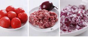 1、番茄燙一下,去皮切丁。洋蔥切丁。