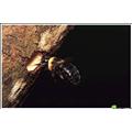 條蜂科,體長約22㎜,全身漆黑;胸部的前緣,密生米黃色的長毛;翅膀為黑褐色。花蜂,是很常見到的訪花蜂類,一般又稱之為材蜂或木蜂;因為雌蜂會在木材上或者是枯木上鑿洞築巢。春、夏兩季,在低海拔山區或平地林緣出現,喜歡在蜜源植物上訪花吸蜜,但常常會被誤認為熊蜂。