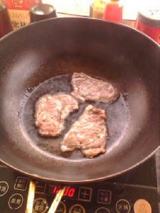6.將蒜蓉放入鍋中炸至金黃色,放入調好的黑椒汁攪勻加熱。在倒入濕澱粉攪勻至汁稠。最後將黑椒汁澆在豬排上就可以了(這步忘了拍照了) |