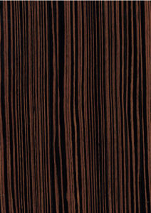 2、非洲花紋烏木(特徵也是有明顯的黑底黃紋,但木紋走向成不規則的山紋狀),此花紋烏與條紋烏均為同一種樹木所出的料,只是開料方法不同而使得花紋不同,條紋烏為縱向開料,花紋烏為斜向開料。