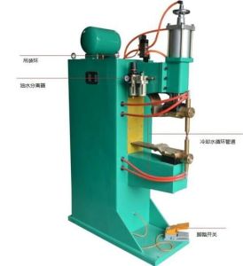 3、在完成上述調整後,可先接通冷卻水後再接通電源準備焊接。焊接過程的程式:焊件置於兩電極之間,踩下腳踏板,並使上電極與焊件接觸並加壓,在繼續壓下腳踏板時,電源觸頭開關接通,於是變壓器開始工作次級迴路通電使焊件加熱。當焊接一定時間後鬆開腳踏板時電極上升,借彈簧的拉力先切斷電源而後恢復原狀,單點焊接過程即告結束。