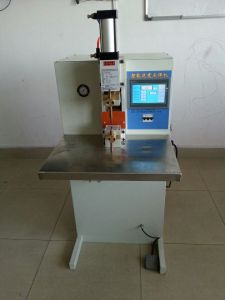 點焊機系採用雙面雙點過流焊接的原理,工作時兩個電極加壓工件使兩層金屬在兩電極的壓力下形成一定的接觸電阻,而焊接電流從一電極流經另一電極時在兩接觸電阻點形成瞬間的熱熔接,且焊接電流瞬間從另一電極沿兩工件流至此電極形成迴路,不傷及被焊工件的內部結構。