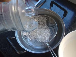 3.加冷水沖一下西米,這個步驟重複兩次 已西米白點消失為標準 | ![]() |