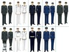 1、軍官常服夏常服:樣式,男軍官,上衣為小開領,單排6粒扣,兩個上貼袋,兩個下挖袋,有袋蓋,褲子為西服褲;女軍官,上衣為小開領,單排3粒扣,兩個下挖袋,有袋蓋,褲子為西服褲。用料,將軍為純毛凡爾丁,校官為70/30毛滌凡爾丁,尉官為45/55凡爾丁。顏色,陸軍為棕綠色,海軍為上本白下藏青色,空軍為上棕綠下藏青色。軍官夏常服配滌棉白細布襯衣,男軍官系藏青色45/55毛滌凡爾丁領帶,女軍官系玫瑰紅色人造絲領帶。