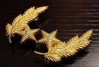帽徽為桃形,圖案為松枝葉、天安門、齒輪、麥穗環繞“八一”軍徽。 帽徽,包括金屬帽徽、貝雷帽帽徽和作訓帽帽徽。其中,金屬帽徽包括大帽徽、小帽徽2種。男軍人戴大檐帽、水兵帽、皮帽(栽絨帽)時,佩帶大帽徽;女軍人戴卷檐帽、皮帽(栽絨帽)時,佩帶小帽徽。大帽徽、小帽徽用螺釘穿過帽徽孔,擺正後用螺母固定。級別資歷章