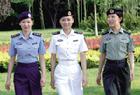 空軍服裝顏色,在現行藍灰色基礎上適當加深,使三軍服裝形成溫和、協調的近似色搭配風格。