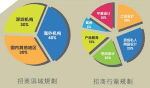 園區以香港及新加坡等海外創意智庫、深港兩地地域優勢為基礎,融合國際頂級創意設計項目,為國內、香港及海外從事建築設計、室內設計、工業設計、平面設計、服裝設計等高端創意設計企業打造創新設計產品研發平台、設計平台、展示平台和交易平台。