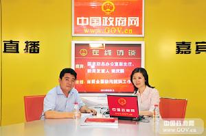 2010年8月4日,國家防總辦公室副主任、新聞發言人束慶鵬接受中國政府網專訪,就“當前全國防汛抗洪工作”進行現場解讀,並回答網民提問。圖為束慶鵬做客中國政府網訪談間。