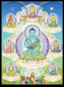 藥師佛,又作藥師如來、藥師琉璃光如來、大醫王佛、醫王善逝、十二願王。為東方淨琉璃世界之教主,簡稱藥師佛。依《藥師琉璃光如來本願功德經》,東方過娑婆世界十恆河沙佛土之外,有佛土名為淨琉璃,其佛號為藥師琉璃光如來。藥師琉璃光如來之名號來源,是以能拔除生死之病名為藥師,能照度三有之黑闇,故名琉璃光。藥師法門,是秉持藥師佛在行菩薩道時所發的十二大願而來。這十二大願滿足眾生世出世間的諸般願求。在出世間上,藥師佛希望在成就菩提時‘令一切有情如我無異’、‘證得無上菩提’等。而在世間上則有‘使眾生飽滿所欲而無令少’、‘使一切不具者諸根完具’、‘除一切眾生眾病、令身心安樂’、‘使眾生解脫惡王劫賊等橫難’等願。這些誓願基本上,雖然也在促使眾生早證菩提,但另一方面也著重於為眾生求得現世的安樂。這也是佛教界稱藥師如來為‘消災延壽藥師佛’,而將藥師法門視為現生者消災延壽法門的原因。