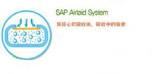 由吸收體(SAP)構成的尖端材料Airlaid Sheet將原有的吸收體(SAP)和棉絮組成的吸水層(CORE)又包裹了一遍,使吸收能力提升,即使再多的尿量也能保持小屁屁的乾爽。採用韓國國內最領先的Core-Wrap技術,不僅提高了吸收能力,而且Airlaid Sheet中的纖維以交錯的(Cross-Fiber)更有效地防止了吸收層斷裂的現象,並且防止了吸收體中吸水顆粒的流出,讓寶寶嬌嫩的皮膚可以放心使用。