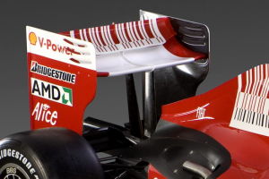 新車按照2009款F1規則打造,最大的變化是空氣動力學套件大大簡化。前翼從之前的1400毫米加寬到1800毫米,安裝位置降低75毫米,與車身同寬。鉸接片是一對傾斜的結構,前翼單側的一大一小副翼相互獨立,如何實現調節,將有待揭曉。不過像以前的任何一款剛出籠的新車一樣,這只是一個初始版本的空氣動力學套件。