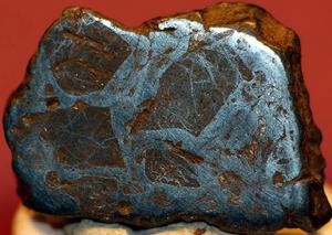 Huckitta(Pallasite, PMG-an)This is an OFFICIAL meteorite name. This is 1 of 11 approved meteorites classified as Pallasite, PMG-an. Huckitta隕石被分類為橄欖石石鐵隕石(Pallasite,PMG-an),1924年發現於澳大利亞,總重2300公斤,右圖為典型Huckitta切片標本。 Huckitta隕石因為墜落時間年代比較久遠,有些會嚴重氧化(左圖)。 隕石墜落坐標:(22° 22'S, 135° 46'E)。
