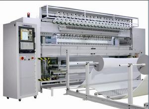 L2000多針絎縫機是世界獨有的大旋梭雙排多針絎縫機,工作速度高達2000轉/分;可絎縫面料厚度達50mm,廣泛套用於絎縫各種高檔床上用品,如被子、床墊、床套、枕套、沙發墊、手袋、家用裝飾品等等。