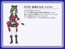 ![]() | 高橋南5代目(本名:有沢栞) 聲優:白石涼子 ●個人介紹:星曆0026年1月8日生於宿務星。21歳。身高148.5㎝。AKB0048的總長。Live和作戰時發號施令的絕對leader成員們都願意跟隨比任何人都要努力的她。但是,平時有些無厘頭說話容易冷場,時常扮演受欺負的角色。 |
