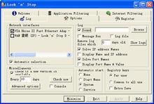 對企圖連線網路的程式判斷非常精確,能準確向用戶提示最直接導致上網的程式,從而由用戶做出決定。比如有個叫Hijack的瀏覽器劫持測試工具,它先生成一HJ.dll,由HJ.dll調用瀏覽器收發信息,Look'n'stop能向用戶提示是Hijack要連線網路,而很多防火牆要么不提示,要么提示是HJ.dll,給用戶造成困惑。