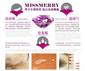 加拿大自然純美的生態環境,熱情洋溢的民族魅力,成就了Missmerry的獨特個性。品牌定位於崇尚健康、個性自由、熱愛自然的都市優雅一族,用豁達樂觀的北美生活態度,陽光般溫暖的足部享受,從容應對每一個寒冷時分。