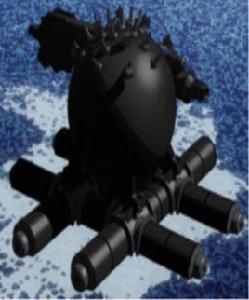 球形本體頂點上安裝著像是反射望眼鏡的連射光束炮。它的外形像是將一根貫穿了球形本體下部的靜電式推進裝置的主浮舟兩端折成<形,並與機械臂連線靠兩台鋪助浮舟支撐的構造。整體上與彌次郎兵衛相近。各種欺瞞武裝則安裝在球狀本體左右以水品深處的懸架翼上。