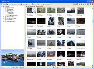 PhotoScape的第二個特點,它其實也是一款出色的照片瀏覽軟體。當我們打開PhotoScape的主界面,進入“照片目錄”標籤下時。軟體便開始以縮略圖的方式,顯示出資料夾中的圖片。而在這個視窗中,您除了可以像在ACDSee中那樣,快速完成圖片的全螢幕觀看、無損鏇轉、幻燈播放等等功能。還可以通過右擊滑鼠,輕鬆地將指定圖片設定成為桌面壁紙,見下圖。